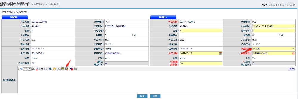 进入界面后,选择对应的批次,点击“增加调整单”按钮进入界面