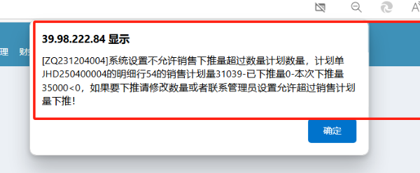 :弹出窗口提示:系统设置不允许销售下推量超过数量计划数量,如何解决?![]()