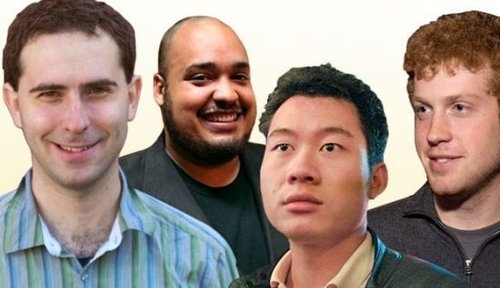 迈克尔赛博尔、艾米特希尔、简彦豪和凯勒沃格特(从左至右)(资料图) 8、迈克尔赛博尔(Michael Seibel)、艾米特希尔(Emmett Shear)、简彦豪(Justin Kan)和凯勒沃格特(Kyle Vogt) 公司:Justin.tv 年龄:27、27、27和25 净资产:不详 Justin.tv让你可以在网上直播任何事情。这四名创始人创造了一个生活直播平台,每月都能迎来超过3000万用户访问量,每月播放的流媒体视频超过 5000万小时。Justin.tv已经成为现存的使用最为广泛的直播视频系统之一,而且拥有庞大的粉丝群体,很多艺术家也参与其中。而且该网站目前并未出现发展放缓的迹象。