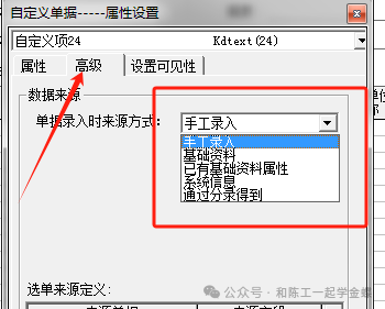 2 高级: 主要是设置数据来源和选单