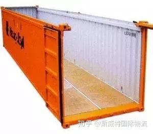 ![]() 冷冻集装箱(reefer container)分外置和内置式两种。温度可在-60℃ ~ +30℃之间调整。内置式集装箱在运输过程中可随意启动冷冻机,使集装箱保持指定温度;而外置式则必须依靠集装箱专用车、船和专用堆场、车站上配备的冷冻机来制冷。这种箱子适合在夏天运输黄油、巧克力、冷冻鱼肉、炼乳、人造奶油等物品。 3开顶集装箱