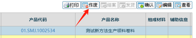 点击一条信息后,背景变色后,点击作废按钮(注意只有未确认的订单才能作废)