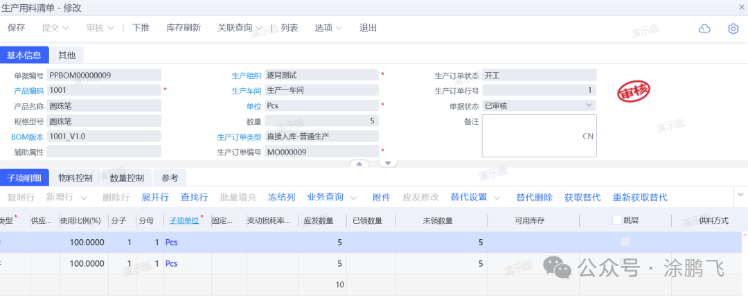 在我们工作中,或者在项目实施过程中,经常会听到倒冲这个词语,在生产发料这个业务环节,倒冲也是绕不开的一个词,有些地方叫倒冲,有些地方称之为反冲,其实都是一个概念。 倒冲是一种事后扣减的方法,常见于生产完成后系统自动扣除原材料库存。 那在我们的生产制造环节上哪些业务会应用到倒冲领料呢? 在生产过程中,对于一些价值低、共用性强、不易拆包的材料,如包材、螺丝、海绵等,许多企业针对这类物料的生产发料都会采用倒冲的方式进行处理。 还有一些标准化程度非常高的离散制造企业,其BOM的标准用料设计的非常合理几乎无损耗,并且整个车间的业务流程非常规范,如手机组装、家电生产等头部企业,经常也会采用倒冲发料的方式进行管理。 或者其他业务场景?大家可以进行一个思考和反推! 倒冲领料优缺点倒冲领料可以简化车间作业流程、提升效率,消除了大量的琐碎的领料发料记账等工作,让工人专注于生产,当然还有其他很多好处。 但是倒冲领料高度依赖精准的BOM结构、高度的标准化生产流程、精益的车间生成制造管理等,要不然实施倒冲领料也可能造成以下后果。 库存混乱,一旦基础数据如BOM不准,将对整个生产造成灾难性的影响,且倒冲领料不适合复杂或者定制化生产,尤其是项目制的生产是无法使用倒冲领料的。 倒冲领料料是一种 “结果驱动” 的物料管理方法,用流程的事后简化换取了过程透明度的降低。它就像一台高效的自动扣款机,但前提是你必须保证放入其中的“规则”(BOM)和“指令”(完工数据)绝对正确,且整个消费环境(车间)高度规范。否则,它扣错账的速度和效率也同样惊人。 金蝶云星空倒冲领料解析在金蝶云星空里面,倒冲领料有两种方式,直接倒冲和调拨倒冲。 直接倒冲:原材料从仓库发往车间时,在系统上不做任何库存移动。物料在系统中始终显示在“仓库”里,直到产品完工时,系统才根据BOM和完工数量,直接从仓库库存中扣减,并计入生产成本。直接倒冲一步到位! 调拨倒冲:原材料从仓库发往车间时,先在系统上做“调拨”,将物料从“原材料仓库”转移到“车间线边仓”(或“在制仓”)。此时,物料的所有权从仓库转移到了车间。产品完工时,系统再根据BOM和完工数量,从“车间线边仓”中扣减这些物料,并计入生产成本。调拨倒冲两步到位! 接下来我们通过一个案例和实操,来展示直接倒冲和调拨倒冲在金蝶云星空系统中的实际应用。 首先我们需要在BOM上设置好物料的发料方式、设置车间仓库、单据类型参数等。。 ![]() 设置车间对应的仓库,以提供调拨使用,这里要注意,仓库的需要设置成车间仓库类型。 ![]() ![]() ![]() 接下来,我们直接下一个生产订单看看,如下图所示,进入生产订单界面,选择生产车间,需要生产的产品数量等信息,保存提交审核即可。 同时要记得查看生产用料清单是否审核、生产订单下达等,才能进行生产入库。 ![]() 由于我们此次生产采用的是倒冲领料,我们就不用进行生产发料操作了,如下图所示,我们直接下推生产入库单,看看什么情况。 ![]() 对下推的生产入库单,进行保存、提交、审核操作。 ![]() 入库之后,我们就可以查看生产发料情况是怎么样的,看看是否已经倒冲发料了。 ![]() 从以上图来看,怎么没有倒冲直接发料呢?经过库存和数据的综合分析,我们发现设置的直接倒冲物料仓库没有库存,另外调拨倒冲那块的车间仓库也没有库存,同时没有做直接调拨单,导致最终无法倒冲领料。 我们修改下相关的数据,再做一个单试试? 如下图所示,修改直接倒冲为原材料仓库,系统查询这块是有库存的。 ![]() 如下图所示,我们再重新新建一个生产订单,我们先推直接调拨单,调拨1001.02物料到车间仓库。 ![]() ![]() 接下来我们之间下推生产入库单进行直接生产入库。 ![]() 我们再去查看当前生产订单的生产领料单和生产用料清单是否符合我们的预期,生产领料单如预期所示,1001.01从原材料直接发料,1001.02从车间仓直接发料,如下图。 ![]() 同时查看订单对应的生产用料清单,其发料也是符合预期的,都进行了发料。 ![]() 金蝶云星空直接倒冲和调拨倒冲区别直接倒冲和调拨倒冲两者的区别主要体现在能否做调拨单以及倒冲领料从哪一个仓库发货。 1、直接倒冲:生产订单/生产用料清单不能下推直接调拨单;用料清单发料仓库默认优先取物料清单中维护的默认发料仓库,没有维护则取物料上维护的默认发料仓库; 2、调拨倒冲:生产订单/生产用料清单可以下推直接调拨单;用料清单发料仓库默认取生产订单上车间中维护的WIP仓。调拨倒冲,系统没有强制控制必须做直接调拨单;如果没有做直接调拨单,对应的WIP仓有足够的库存,也可以进行倒冲领料操作。 总结本文章围绕生产管理中的“倒冲领料”展开,介绍了其概念、适用场景及优缺点。倒冲是一种事后扣减库存的方式,适用于标准化程度高、物料共用性强的生产环境,如包材、螺丝等低值易耗品的管理。且文章重点解析了金蝶云星空系统中的两种倒冲方式:直接倒冲与调拨倒冲。前者在完工时直接从仓库扣料,无需提前发料;后者需先将物料调拨至车间仓,再在完工时扣减。两者在操作流程和仓库选择上存在差异,实施时需确保BOM准确、流程规范,否则易导致库存混乱。并且通过实际操作案例展示了倒冲设置失败的原因及修正过程,强调了数据与