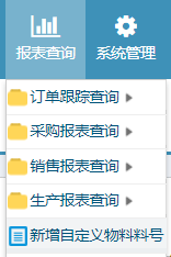 操作步骤:报表查询-新增自定义物料料号