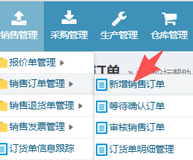 操作步骤:销售管理-销售订单管理-新增销售订单