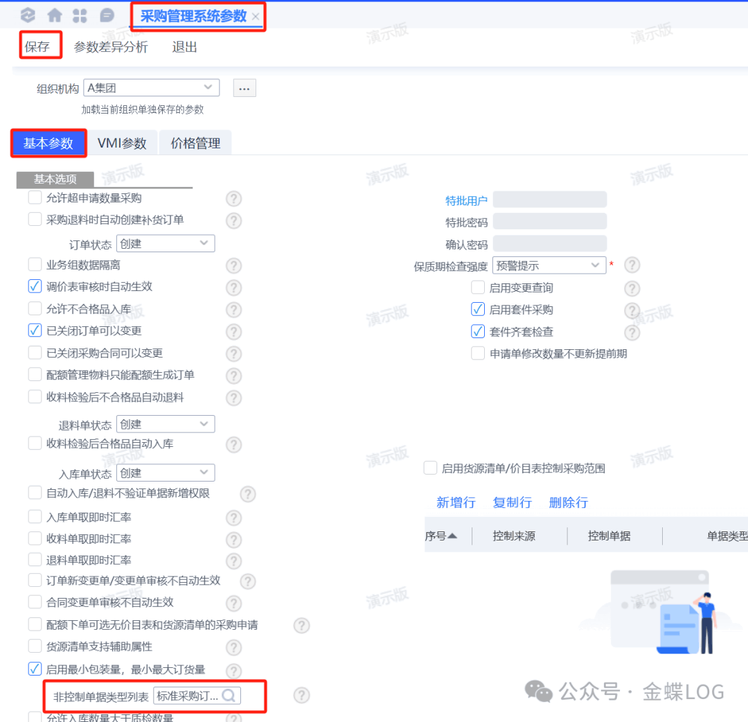 例外处理 如果不想对某种采购订单类型进行控制,可以在【非控制单据类型列表】里面选择对应的单据类型(比如标准采购订单) 这样用户在以小于最小订货量的数量(100)下标准采购订单时,系统则不会自动进行调整。 四、总结在实际业务中,根据物料属性、供应周期、存储成本等因素,分别设置合理的最小库存和最小订货量,让系统更精准地管理物料。以上便是最小库存和最小订货量的介绍。您学会了吗? 阅读原文:原文链接 点晴模切ERP更多信息:https://moqie.clicksun.cn,联系电话:4001861886 该文章在 2026/4/14 15:18:18 编辑过 |