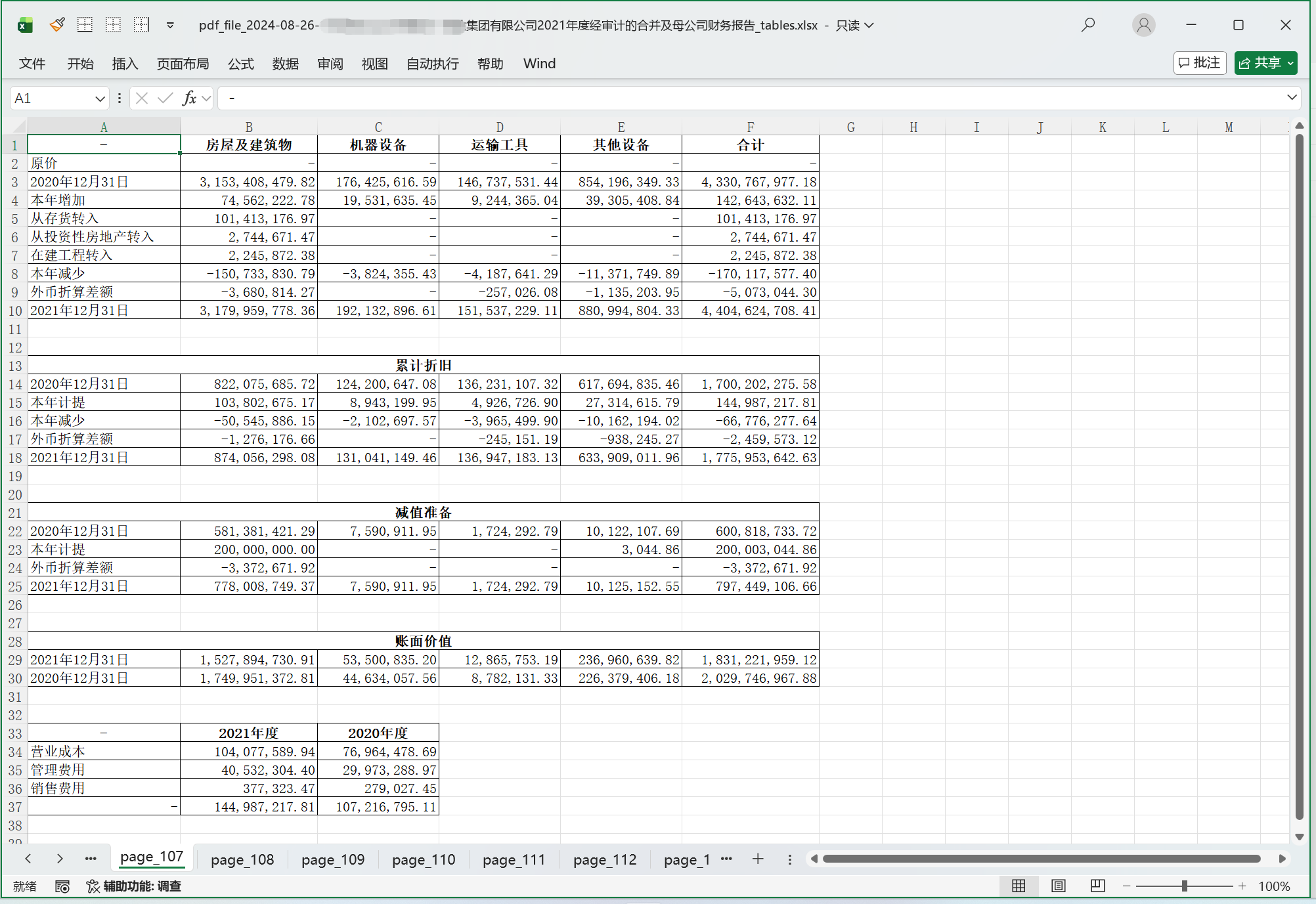▲审计报告 - 合并资产负债表的第一页