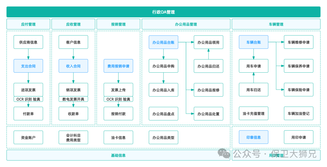 这也是为什么很多人会产生错觉:好像他们没有OA。实际上,是OA被拆散了,融进了业务系统里。