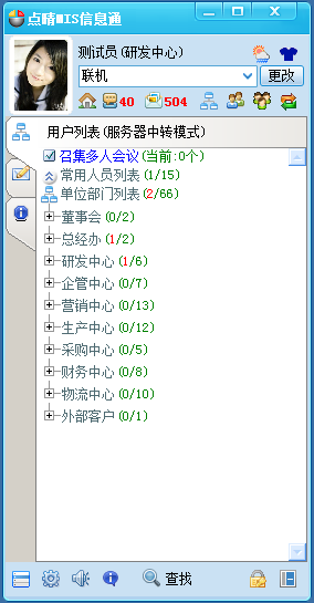 点晴MIS信息通是点晴公司基于点晴MIS系统推出的在PC上运行的独立企业IM交流系统(类似于腾讯RTX基于企业内部组织机构及人员的沟通工具),是点晴MIS系统在PC上的有力帮手和功能补充。