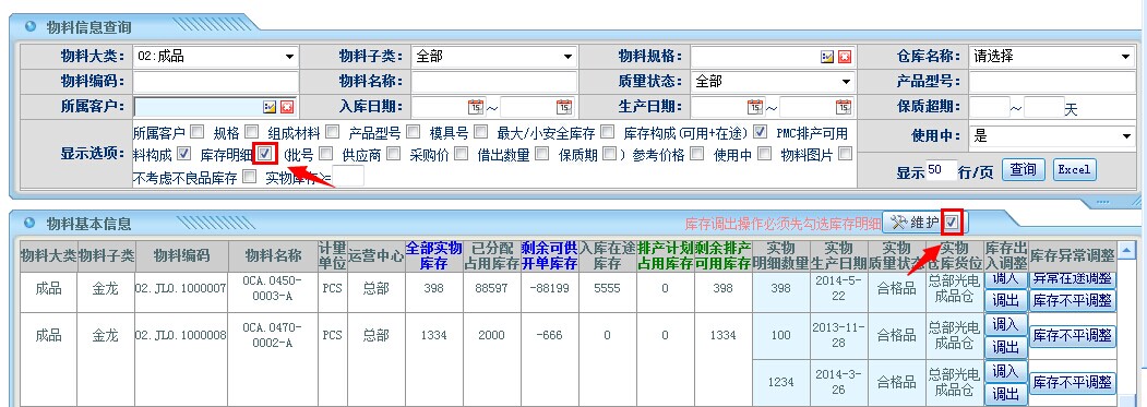 剩余排产可用库存是指实物库存减去已排产计划占用的库存,剩下来可以分配用的库存,不允许负数。 PMC已占用库存是指生产单排产后根据BOM那边自动算出的材料用量,若原材料库存量不满足占用量,则PMC已占用库存=0 不允许负数。