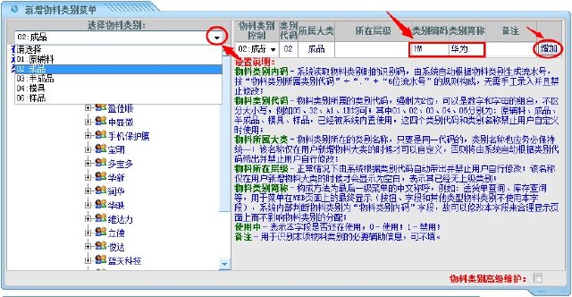 操作步骤:系统管理——物料管理——物料类别维护;进入页面如下图操作即可。