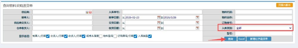 然后出现如下图所示页面,点击查询。选好对应的物料信息,勾上对应的退货数量,点击下方的“提交拣货数量”: 填好物料并确认退货数量之后,点击“采购单退货确认”完成操作。 ![]() 点晴模切ERP更多信息:https://moqie.clicksun.cn,联系电话:4001861886 该文章在 2026/3/26 14:34:16 编辑过 |