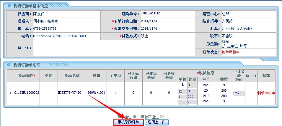 点晴模切ERP采购管理—采购单审核操作