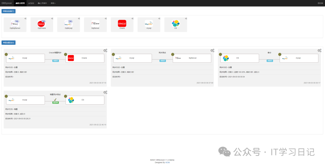简介Db-Syncer是一款功能强大的开源异构数据库同步系统,支持MySQL、Oracle、SQLServer、PostgreSQL、Elasticsearch(ES)、Kafka、File、SQL等多种数据源之间的增量和全量同步。系统内置实时监控、数据同步状态、性能指标、系统日志、性能预警等功能,支持插件式拓展,可通...