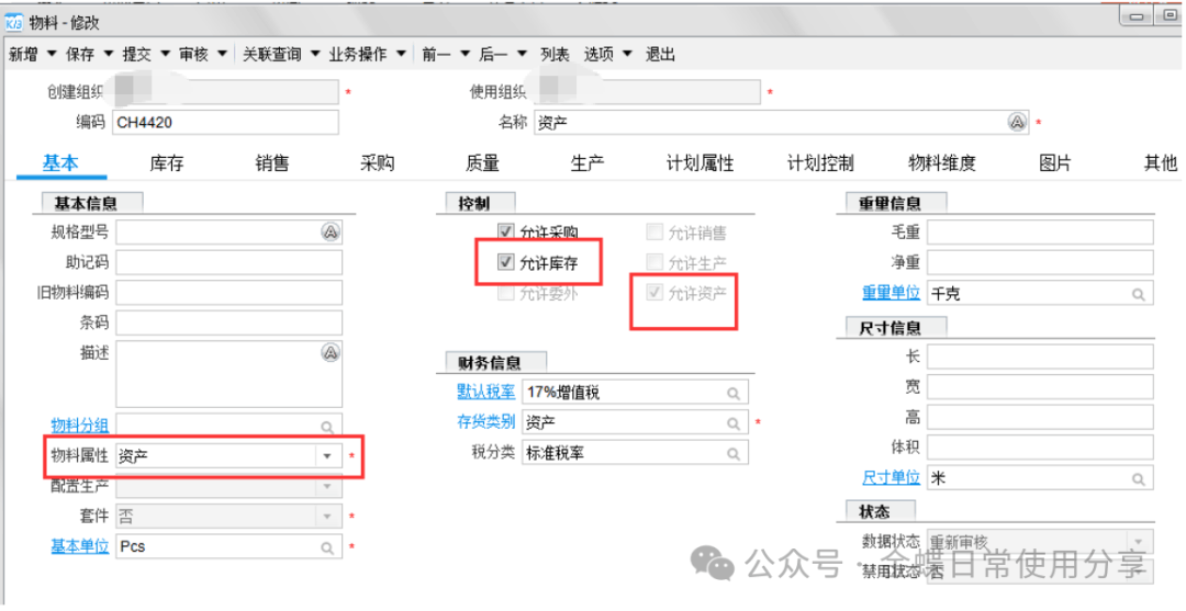 【操作说明】:注:只有物料属性为资产的物料才能做资产申请单。