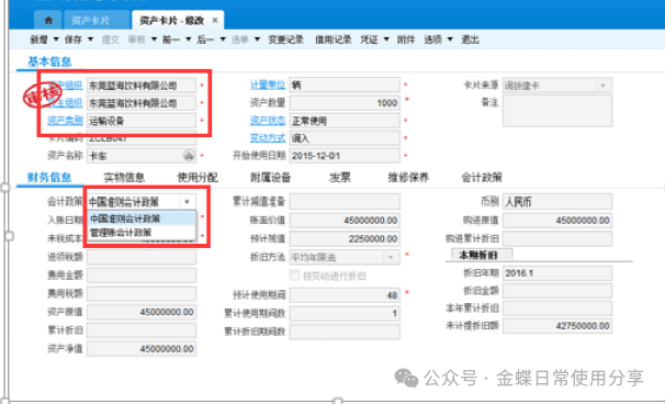 若还有附属设备、发票内容、维修保养需要记录,都可以放在附属设备、发票、维护保养页签中,此处仅作为管理需求存在,不影响财务计算。