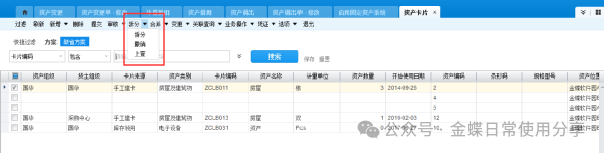 【操作说明】:资产卡片为私有基础资料,按照实际使用组织进行创建