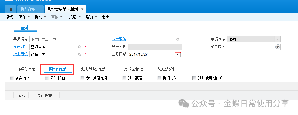 根据实际需求填写卡片,若一个使用组织使用多个会计政策,则需要在每种政策下,填写财务信息。
