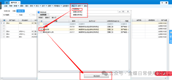 在资产卡片中选择需要生成凭证的单据,点击“生成凭证”选择归属的账簿,点击“凭证生成即可”。