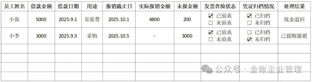 ▎五、备用金管理极简表格(直接下载用) 把这个表格设为共享文档,每天更新 1 次,对‘距离报销截止日不足 15 天’的记录标红预警。老板和财务都能实时看备用金状态,避免漏管。